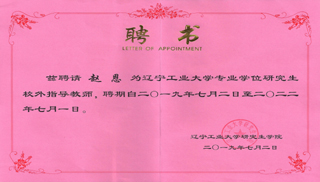 我公司趙恩、翁鐵生被遼寧工業(yè)大學(xué)研究生學(xué)院聘為遼寧工業(yè)大學(xué)專(zhuān)業(yè)學(xué)位研究生校外指導(dǎo)教師。